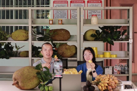 功夫不负有心人,村里的账号“班幸村味”的首场菠萝蜜直播就迎来“开门红”:镜头前,村支书捧着果子介绍得热情洋溢;镜头后,我一边回复评论区的提问,一边协调打包发货。当最后一笔订单确认完成,核算收入时,大家都笑了——这次直播不仅帮社区的菠萝蜜基地清空了库存,更给村集体经济增加了1万余元收入。