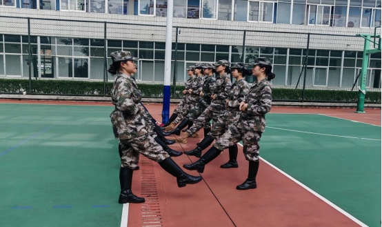 决赛现场,气氛紧张而热烈,我校女将凭借过硬的军事素养、精湛的专业技能沉着应战。队列展示,她们如移动的钢铁长城,动作整齐划一、气势如虹。