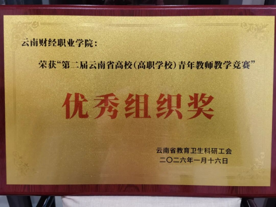 此次竞赛为我校青年教师提供了交流学习、切磋技艺的优质平台,既是对我校师资队伍建设成果的一次有力检验,也为后续教学改革与质量提升注入了强劲动力。云南财经职业学院将以此次获奖为契机,持续深化“以赛促教、以赛促学、以赛促改”的育人理念,进一步加强青年教师培养,搭建更多成长成才平台,不断提升教育教学质量,为云南教育高质量发展培育更多高素质财经技能人才。