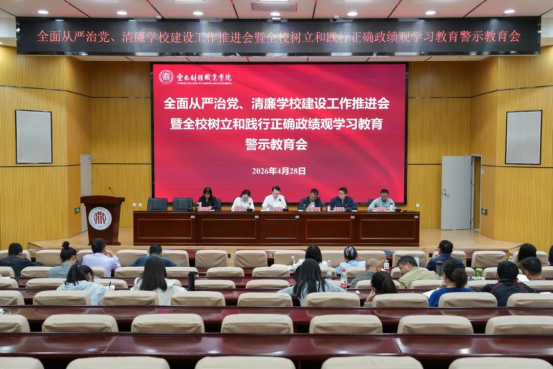 4月28日,云南财经职业学院在学术报告厅召开全面从严治党、清廉学校建设工作推进会暨全校树立和践行正确政绩观学习教育警示教育会。深入学习领会习近平总书记关于全面从严治党的重要论述,贯彻落实二十届中央纪委五次全会,省纪委十一届六次全会精神,2026年教育系统全面从严治党工作会议及全省教育系统党风廉政建设和清廉学校建设工作部署会暨警示教育会精神。党委书记张金甫出席会议并作讲话。