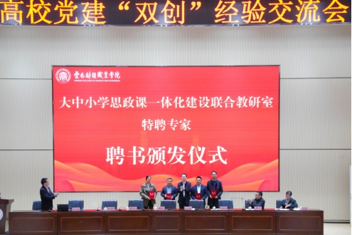 为构建“全学段贯通”的思政课建设协作平台和“全资源共享”的思政育人体系,云南财经职业学院联合云南财经大学马克思主义学院、昆明市盘龙区财大附中、昆明市盘龙区云才文翰学校共同成立“大中小学思政课一体化建设联合教研室”。张金甫与联办学校领导共同为教研室揭牌,并为中央财经大学马克思主义学院院长黄刚、全国高校思政名师工作室主持人阮金纯、云南警官学院马克思主义学院院长陈明珍、云南财经大学马克思主义学院院长宁乐锋颁发联合教研室特聘专家聘书。