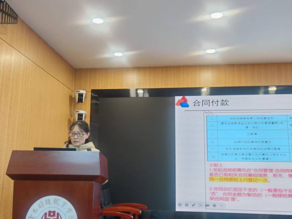培训会上,刘嘉谦处长作动员讲话。她强调,财务管理的规范化程度直接关系到学校的治理效能,要求全体参训人员秉持严谨务实的态度,将财务工作做得更加细致、扎实,为学校的高质量发展提供坚实的支撑。