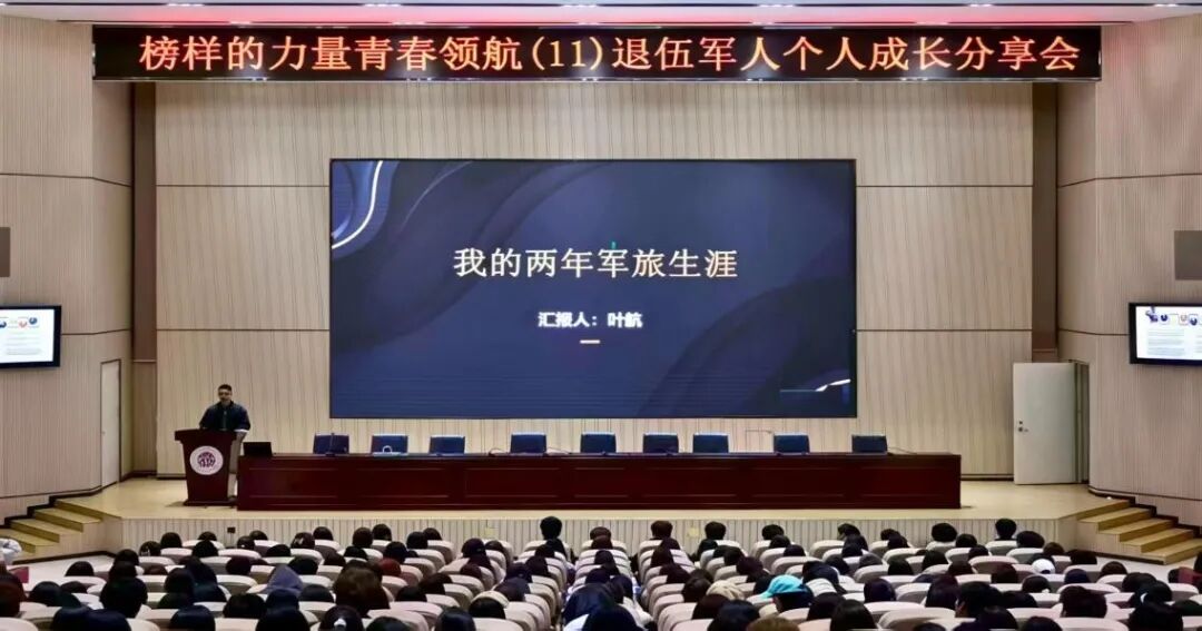 11 月 13 日傍晚,两场征兵宣讲在铭德楼报告厅依次进行,吸引近600余名同学参与。退伍复学学生叶卓分享了两年军旅生活与未来展望,为同学们未来的就业意向提供了参考。