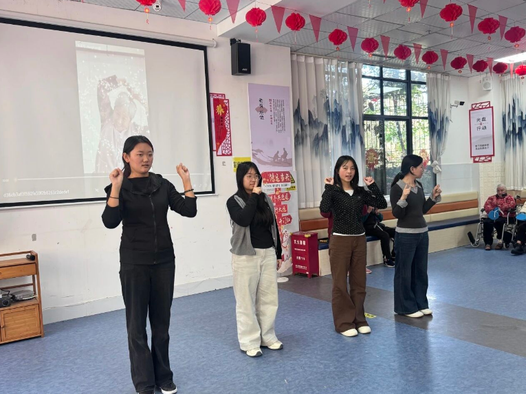 活动伊始,同学们化身耐心的“小老师”,手把手教爷爷奶奶们学习简单易学的手势舞。随着轻快的音乐响起,老人们认真地模仿着同学们的动作,虽然动作略显缓慢,但脸上洋溢着孩童般的笑容。手指翻飞间,隔代的距离被悄然拉近,温馨的氛围在活动室里流淌。