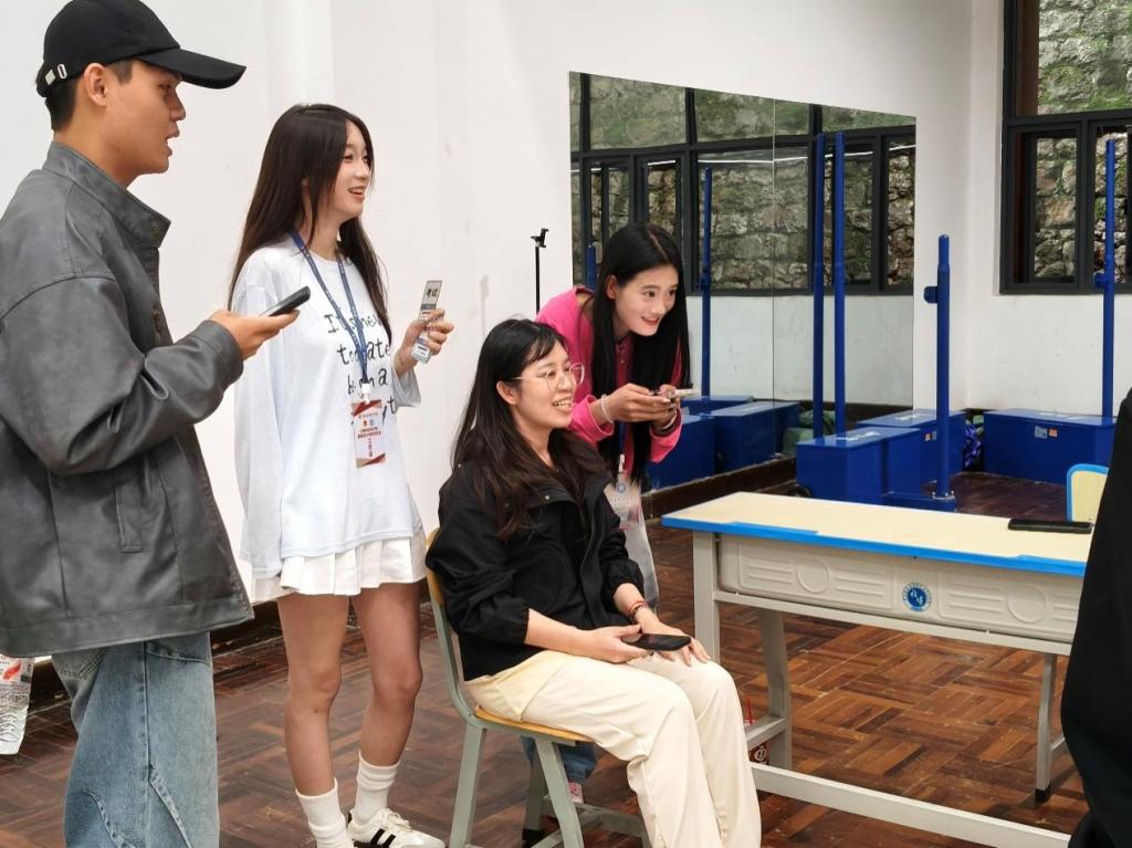 活动以6项特色游戏串联,处处藏着文化对话:“中泰一家亲,歌声传友谊”环节,双语文歌交织两国旋律,中国学生领唱《茉莉花》、泰国留学生分享泰剧插曲,歌声成友谊密码;“你画我猜”用“端午包粽”“泰国水灯节”等双语题目,比划间让两国民俗鲜活呈现;“中泰同心・绳结传情”时,师生教编中国结,泰国留学生则分享本国吉祥绳文化,以指尖互动传递文化温度;“‘羽’你同行”羽毛球赛中,混编队伍协作竞技,赛场欢笑消融隔阂;最后“民族打跳”环节,文艺部同学带领围成圈,云南民族舞蹈动作与泰国传统律动相融,肢体律动拉近心距。