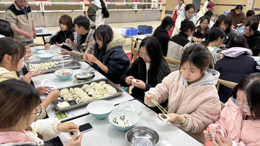 在食堂工作人员指导下,同学们全程参与食材处理、馅料调制及煮制全流程,沉浸式体悟劳动价值与传统饮食文化。热气腾腾的饺子端上桌,汤汁四溢、鲜香萦绕,既是舌尖美味,更是劳动收获的甘甜。