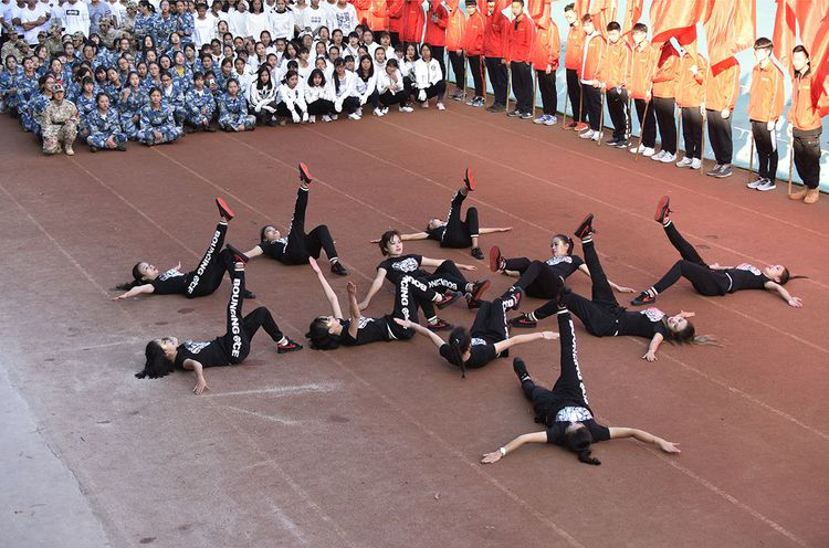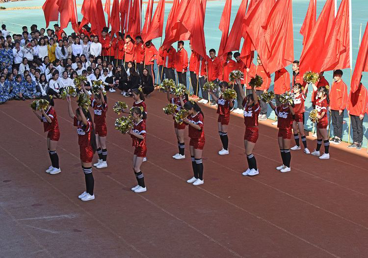 然后便是令人激动的啦啦操比赛,各参赛队伍各具特色,尽情地展现了各自的特点,现场气氛也相当活跃。