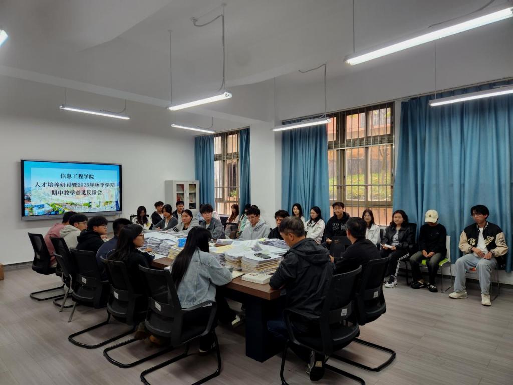 为进一步优化专业人才培养方案,精准回应师生教学诉求,切实提升教学质量与人才培养实效,10月16日下午,信息工程学院在龙泉校区育德楼108教室召开人才培养研讨暨2025年秋季学期期中教学意见反馈会议。学院书记李超强、院长黎乾坤,数据安全产业学院副院长华思玉,以及学院各教研室主任、专业带头人,龙泉校区23级至25级各班学生代表、校企合作企业代表共同参会。