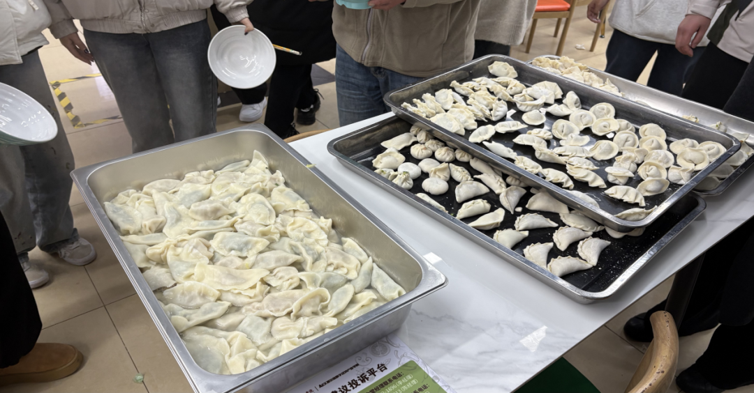 在食堂工作人员指导下,同学们全程参与食材处理、馅料调制及煮制全流程,沉浸式体悟劳动价值与传统饮食文化。热气腾腾的饺子端上桌,汤汁四溢、鲜香萦绕,既是舌尖美味,更是劳动收获的甘甜。