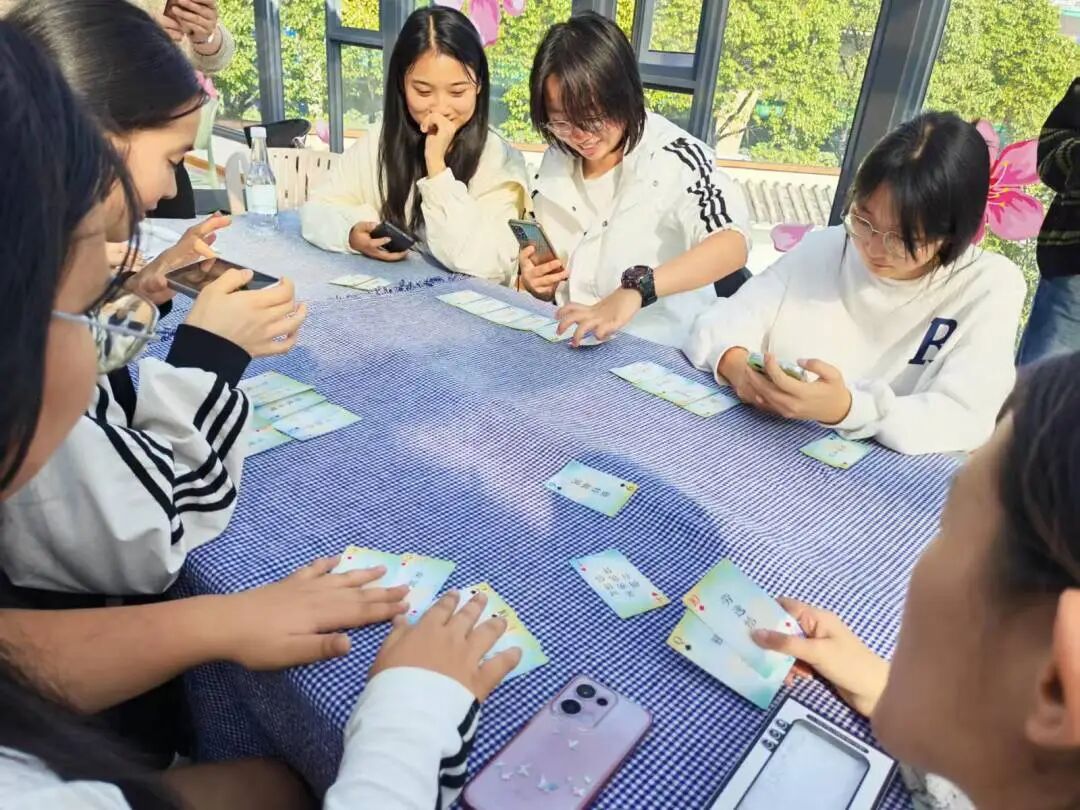 11月13日,龙泉校区心理健康教育咨询中心内暖意融融。“手指操”“大雨小雨”等破冰游戏打破陌生壁垒,让同学们在轻松律动中感知情绪流动;互动问答环节,大家坦诚分享校园情感困惑与应对方式,在交流中打破认知误区;爱情三角理论分享带大家读懂亲密关系的本质,而“猜猜我爱谁”卡牌游戏,则引导同学们探索自身特质与欣赏的品质,在趣味互动中树立健康婚恋观。