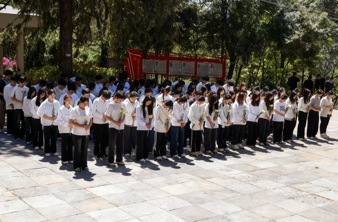 近日,学院师生在黑龙潭烈士陵园,开展“缅怀革命先烈,弘扬雷锋精神”主题祭扫志愿活动。在烈士纪念碑前,党员教师带领全体师生宣誓,铭记“为人民服务”初心。本次活动是学院落实党建带团建要求的生动实践,通过党团联动模式,引导学生将理想信念转化为服务社会、奉献人民的行动,弘扬爱国主义精神与社会主义核心价值观,以实际行动传承雷锋精神,在红色祭扫中厚植爱国情怀、践行奉献使命。
