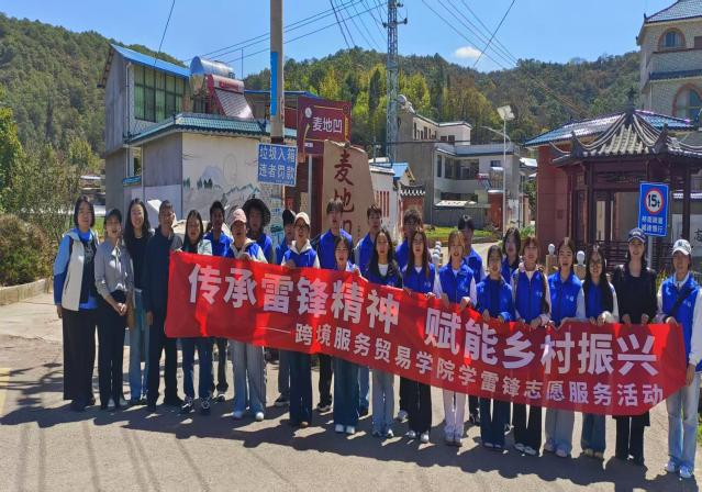 跨境服务贸易学院以“传承雷锋精神 赋能乡村振兴”为主题,结合直播电商专业特色,到楚雄高桥镇开展公益系列活动。师生通过直播助农培训、入户关爱“一老一小”及交通劝导等志愿服务,将专业技能与乡村振兴实践深度融合,推动雷锋精神落地生根。