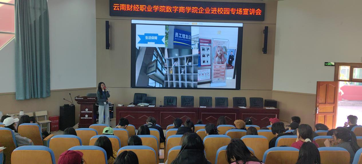 数字商学院高度重视学生实习就业工作,坚持将“促就业、稳就业”作为重点任务扎实推进。本次活动严格遴选并邀请了云南星火源传媒科技有限公司、昆明新亚企航房地产经纪有限公司、云南方信科技有限公司、东莞新能德科技有限公司四家企业到场宣讲。企业涵盖传媒科技、房地产经纪、信息技术、新能源等多个领域,与相关专业契合度高,为学生提供了多元化的发展平台和转正就业机会。