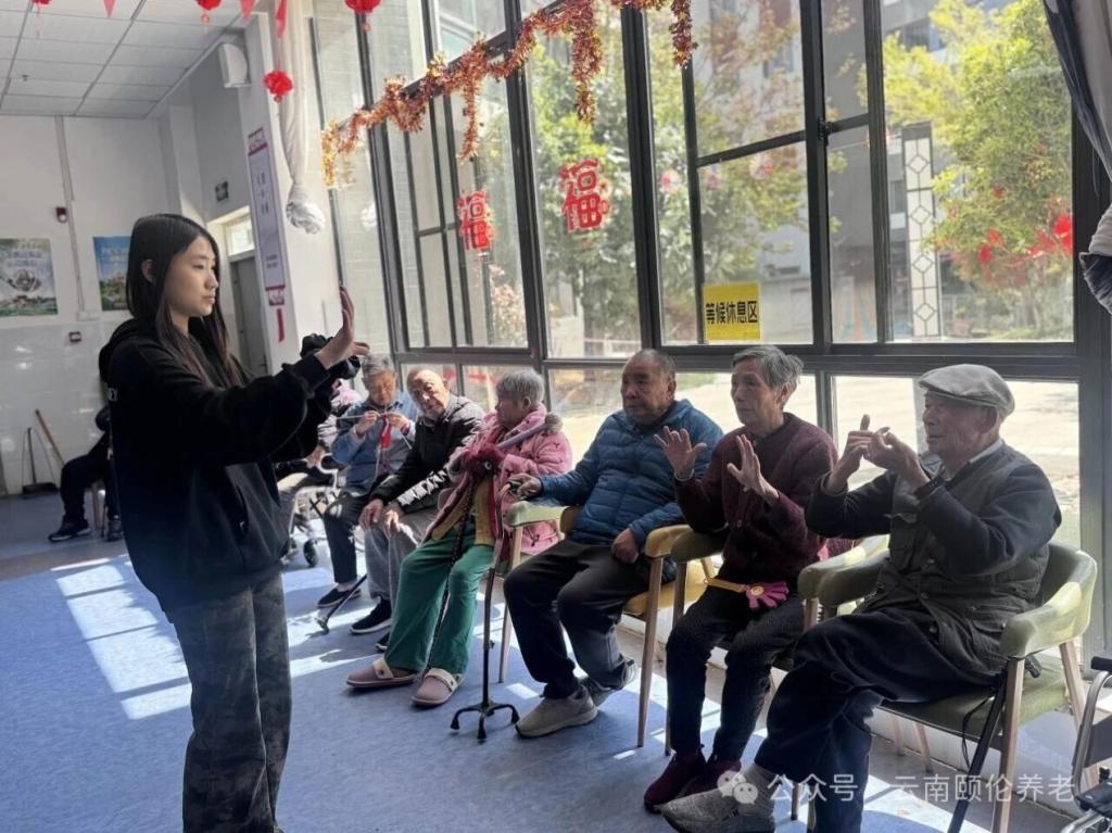 活动伊始,同学们化身耐心的“小老师”,手把手教爷爷奶奶们学习简单易学的手势舞。随着轻快的音乐响起,老人们认真地模仿着同学们的动作,虽然动作略显缓慢,但脸上洋溢着孩童般的笑容。手指翻飞间,隔代的距离被悄然拉近,温馨的氛围在活动室里流淌。