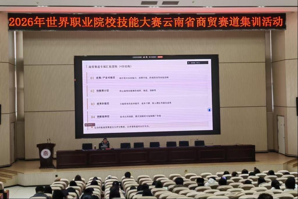 为全力备战2026年世界职业院校技能大赛,充分发挥“以赛促教、以赛促学、以赛促改”的引领作用,由云南省职业院校技能大赛执行委员会主办、云南财经职业学院承办的2026年世界职业院校技能大赛云南省商贸赛道集训,于2026年3月17日至3月27日在云南财经职业学院龙泉路校区成功举办。