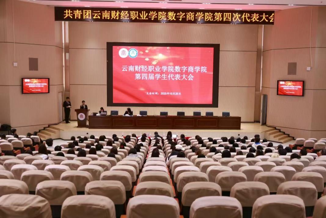 云南财经职业学院数字商学院第四届学生代表大会暨2025-2026学年学生会主席团换届大会于2025年10月25日上午在铭德楼报告厅顺利召开。大会以“总结过往成果、选举新生力量、赋能学生发展”为主题,为学院学生工作的持续发展注入新动力。100余名学生代表与多位老师共同出席。