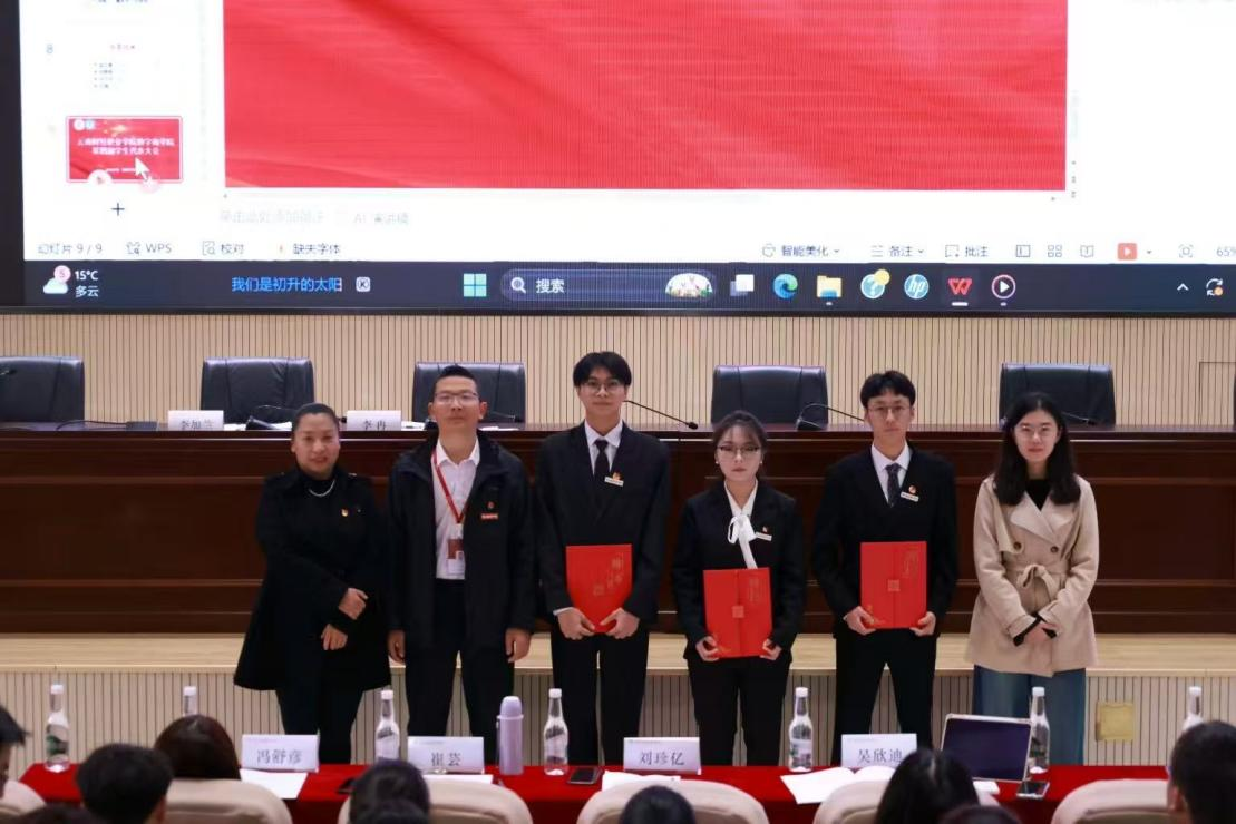 数字商学院党支部书记刘珍亿老师、党支部副书记崔芸老师、党支部纪检委员冯舒彦老师、数字商学院团总支书记吴欣迪老师莅临指导,校学生会各部部长各学院主席团成员数字商学院学生会23级干部受邀参会。