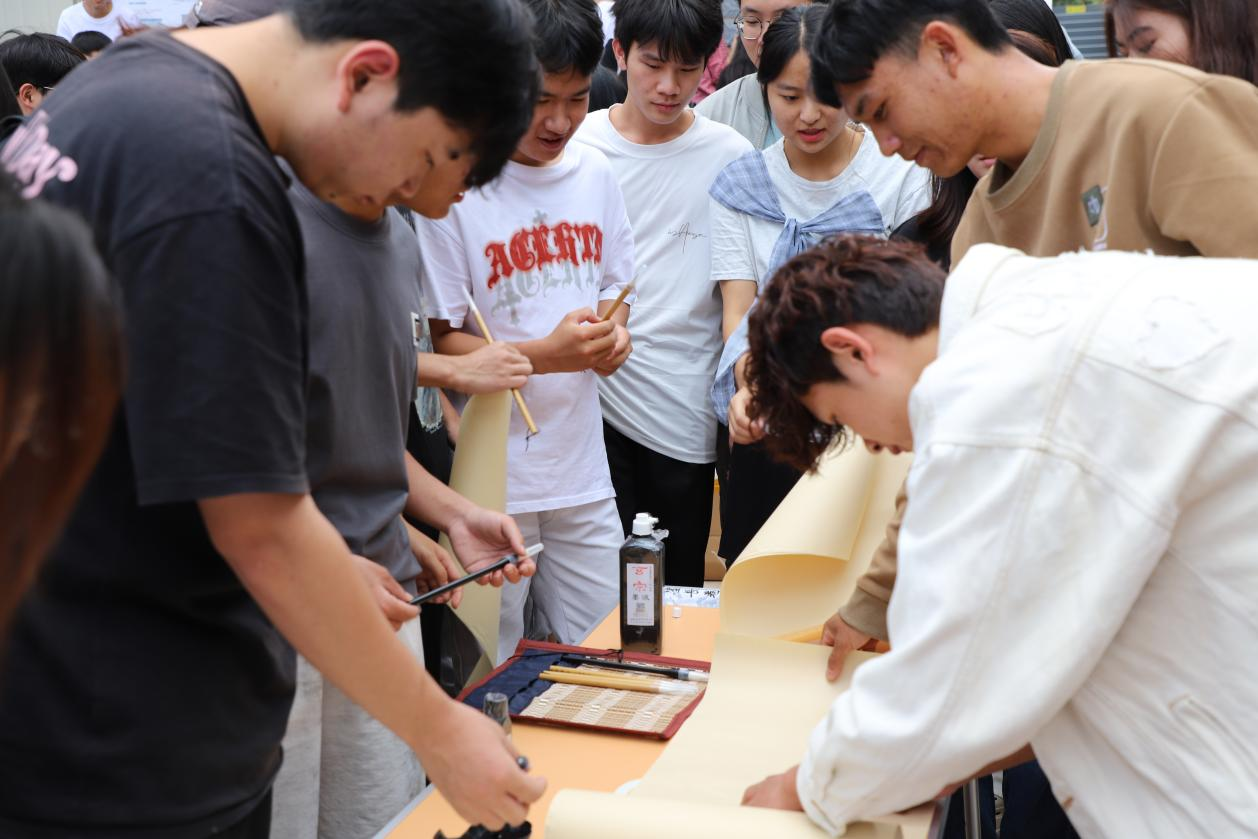 2025年9月11日下午,为弘扬爱国主义精神、传承中华优秀传统文化,云南财经职业学院信息工程学院在育德楼门口隆重举办“以笔墨致胜利,以青春颂和平”书法长卷创作活动,以此纪念中国人民抗日战争暨世界反法西斯战争胜利80周年。