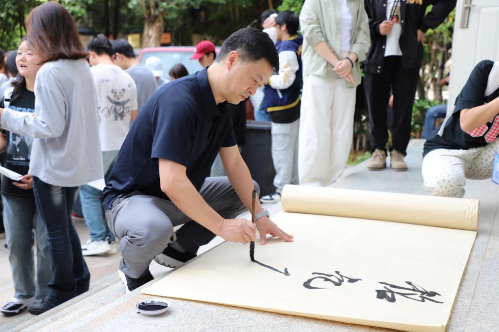 活动拉开帷幕后,信息工程学院党支部书记李超强首先发表致辞。他指出:“书法是中华民族的文化瑰宝,今天我们以笔墨书写胜利,既是对先辈的告慰,也是对未来的期许。”李书记铿锵有力的话语,引发了现场师生的强烈共鸣,赢得阵阵掌声。