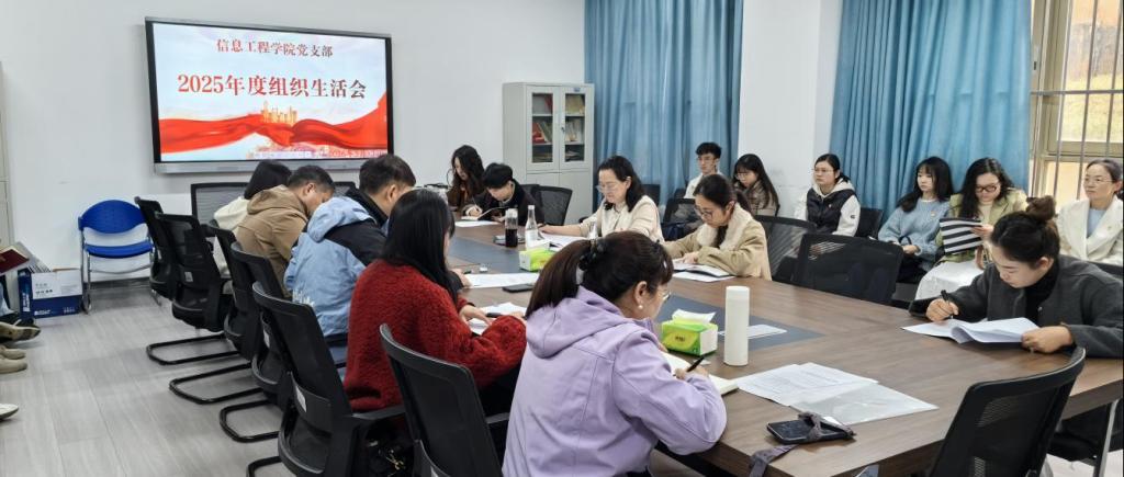 为深入学习贯彻习近平新时代中国特色社会主义思想,全面贯彻落实党的二十届四中全会精神,锲而不舍落实中央八项规定精神,推进作风建设常态化长效化,2026年3月12日下午,信息工程学院党支部在育德楼108室召开2025年度组织生活会。会议由党支部书记李超强同志主持,支部30名党员参加会议,党委委员、副校长沈豫琼同志到会指导并作点评讲话。