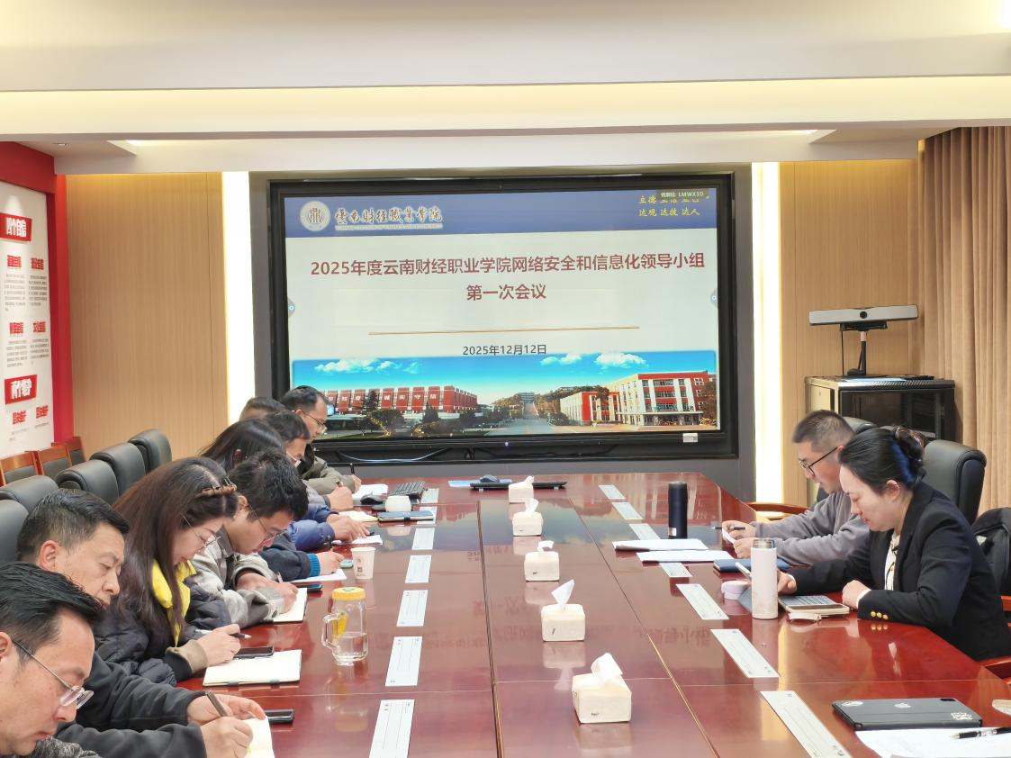 为系统推进学校网络安全与信息化工作,服务学校“十五五”事业发展大局。2025年12月12日,云南财经职业学院网络安全和信息化领导小组2025年度第一次会议在知行楼第一会议室顺利召开,领导小组副组长严黄一仪副校长出席并主持本次会议。会议聚焦学校网络安全与信息化发展核心议题,听取学校2025年网络安全和信息化建设工作的报告,审议并通过《关于中国移动5G信号覆盖场地租赁及供电协议续签事项》。