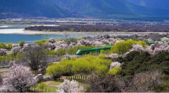 2025年4月2日,复兴号列车穿行在拉林铁路林芝段。新华社记者 晋美多吉 摄