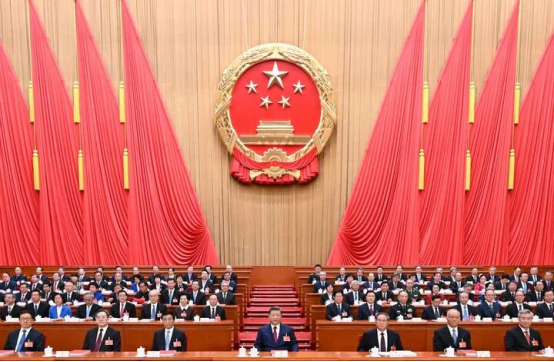 3月12日下午,第十四届全国人民代表大会第四次会议在北京人民大会堂闭幕。党和国家领导人习近平、李强、王沪宁、蔡奇、丁薛祥、李希、韩正等在主席台就座。新华社记者 谢环驰 摄