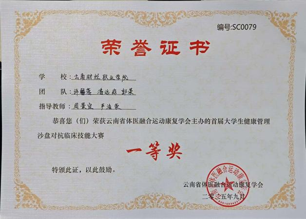 本次大赛设有高职高专组赛道,分为健康管理情景模拟沙盘对抗与现场答辩两个阶段,全省36支队伍同台竞技。云南财经职业学院数字康旅学院周景宜、严浩荣两位老师指导3支队伍参赛,最终斩获一等奖2项、三等奖1项。