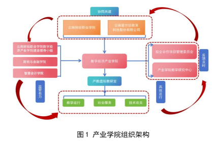 破解专业建设与产业需求脱节痛点,关键在于打破校企壁垒。云南财经职业学院数字经济产业学院创新实施校企“双带头人”治理模式,由校方财税与金融学院与企业负责人共同决策。学院设立教学、学生管理、后勤三大运营团队,形成高效协同的“校—企—行”治理架构。