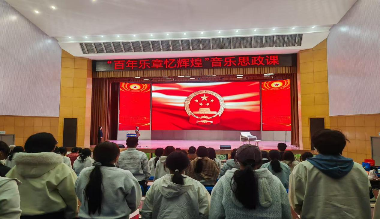 在活动现场,同学们聆听了一堂以“百年乐章忆辉煌”为主题的精彩音乐思政课。授课教师从曲目背景入手,生动阐释党的二十届四中全会精神内核,引导青年学子在艺术熏陶中筑牢信仰根基、强化政治认同。同学们在红色旋律中聆听党史故事,体悟“坚持人民至上”的重要理念,在音乐浸润里牢固信仰根基。