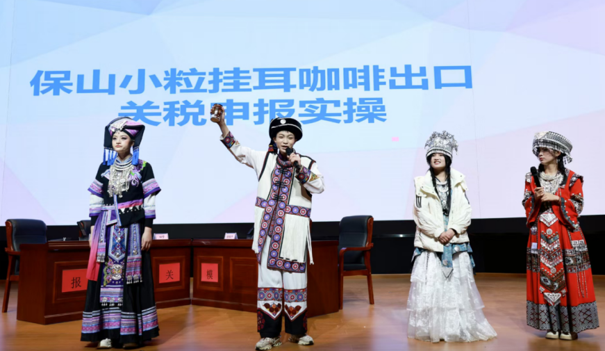 本次挑战赛紧扣报关技能核心与云南特色优势,为参赛学生搭建起仿真货物进出口报关实战场景。各参赛小组围绕小粒咖啡、猫哆哩、宣威火腿、鲜花饼、马老表米线等云南特色产品,沉浸式开展模拟进出口报关全流程操作。