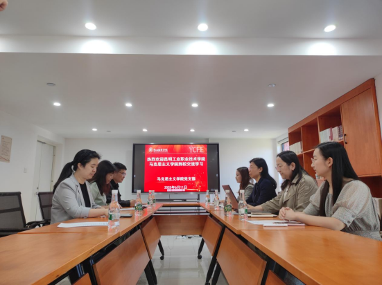 云南财经职业学院马克思主义学院党支部书记对昆明工业职业技术学院党支部书记、院长一行4人到访交流表示热烈欢迎,详细介绍了马克思主义学院党支部参与高校党建“双创”的情况,分享了创建步骤、材料准备等方面的工作方法和心得。《毛泽东思想和中国特色社会主义理论体系概论》课教研室主任介绍了学院特色课程建设和教研教改的情况。马克思主义学院党支部宣传委员介绍了学院开展习近平新时代中国特色社会主义思想“三进”工作的情况。
