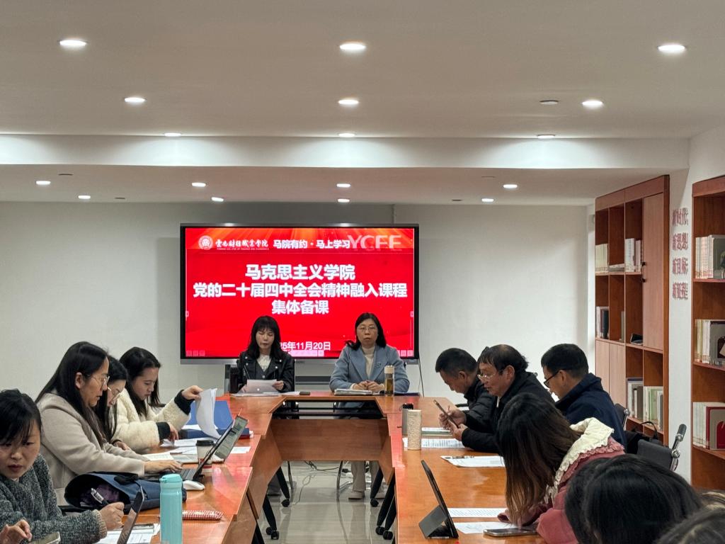 为深入学习贯彻党的二十届四中全会精神,推动全会精神“进教材、进课堂、进学生头脑”,更好培养堪当民族复兴大任的高素质技术技能人才,2025年11月20日,马克思主义学院举办学习贯彻党的二十届四中全会精神集体备课会。党支部书记主持活动,党支部全体党员和全体专兼职思政课教师参加备课。
