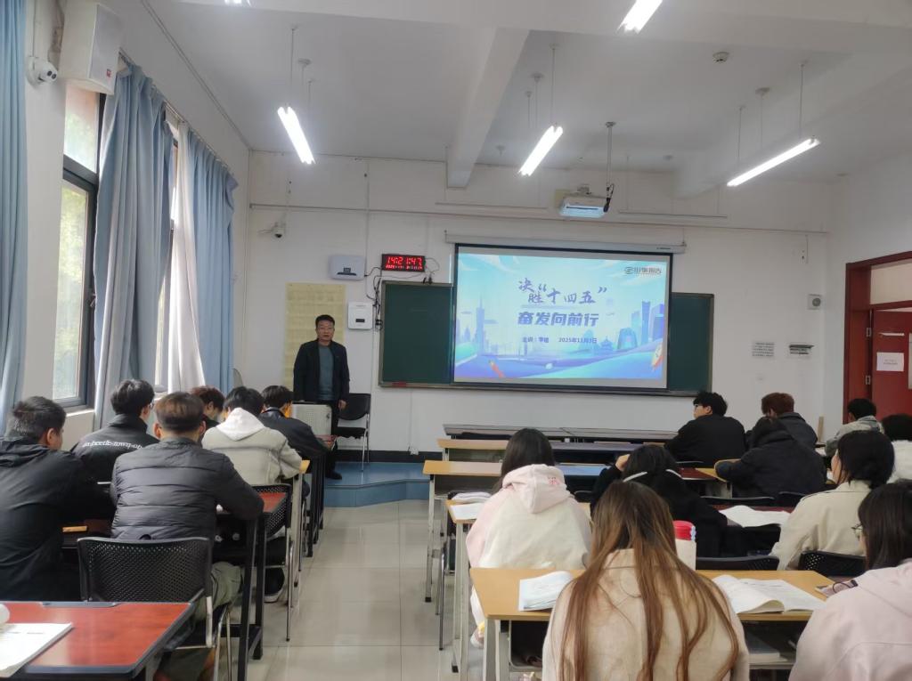 为引导广大青年学子深刻认识国家发展大势,明确时代责任与历史使命,2025年11月3日下午,副校长李雄为学生讲授题为《 决胜“十四五”奋发向前行》的形势与政策课。