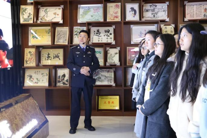 下午两点,师生统一乘车抵达戒毒所。在完成严格有序的安检流程后,跟随着工作人员的引导,大家安静列队,走进这片充满警示与希望的土地。在戒毒所内,师生依次参观了学员生活区、图书阅览区,并欣赏了戒毒人员创作的字画作品。一幅幅笔墨背后,是挣扎与重生的轨迹,也让同学们深刻体会到“每一段迷失,都渴望回归”。